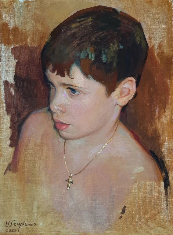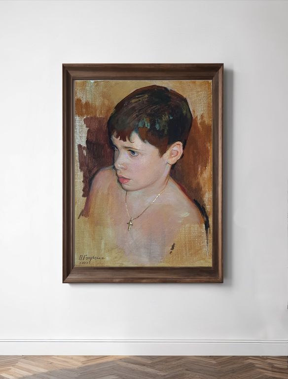 На картине представлен этюдный портрет младшего брата художницы.